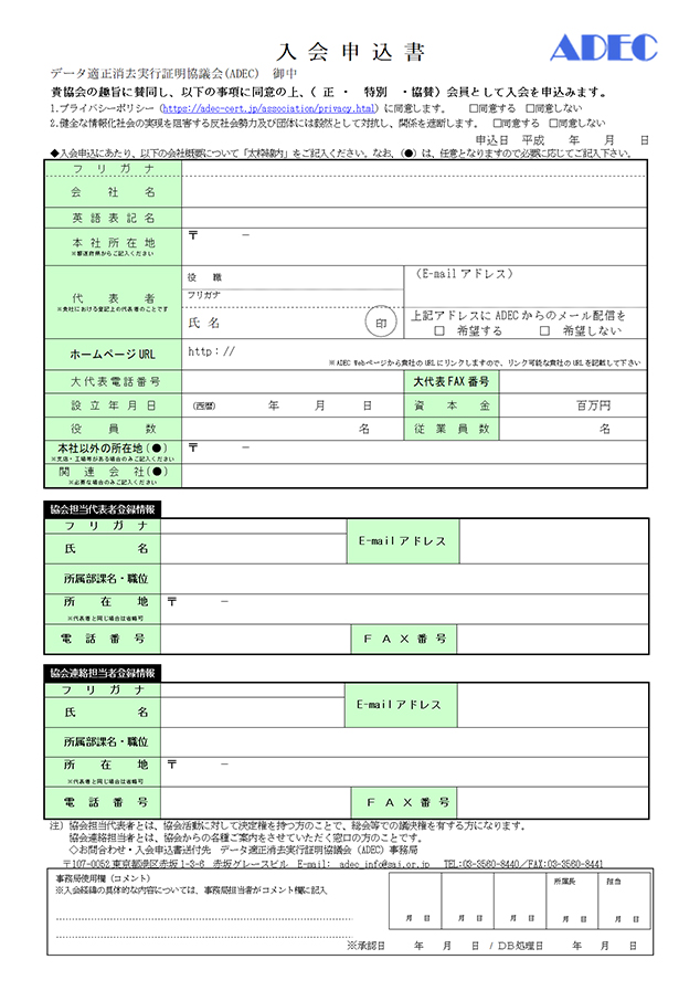 ADECへの入会・認証申請に関する書類をダウンロードすることができます。
