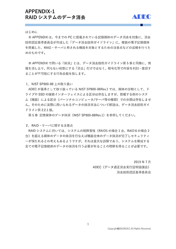 ADEC消去技術認証基準委員会にて認証手順についてご説明